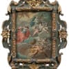 Olio su carta, in cornice antica in legno intagliato e laccato.