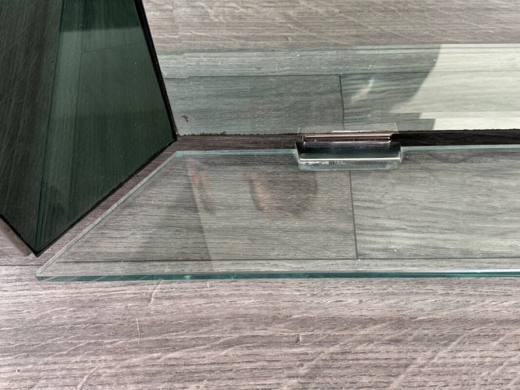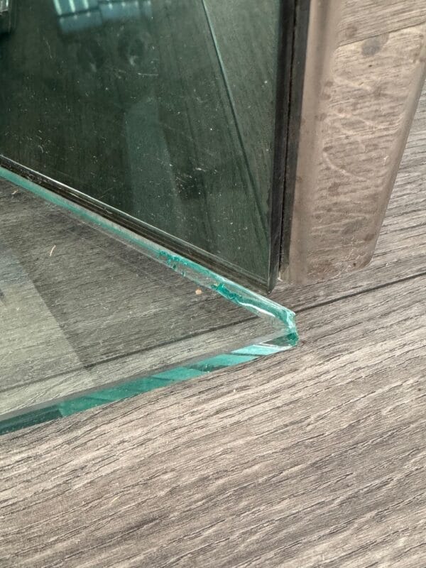 In generale è conservato bene però faccio presente che ci sono alcuni segni di usura tra cui una sbeccatura sull angolo destro del ripiano in vetro trasparente.