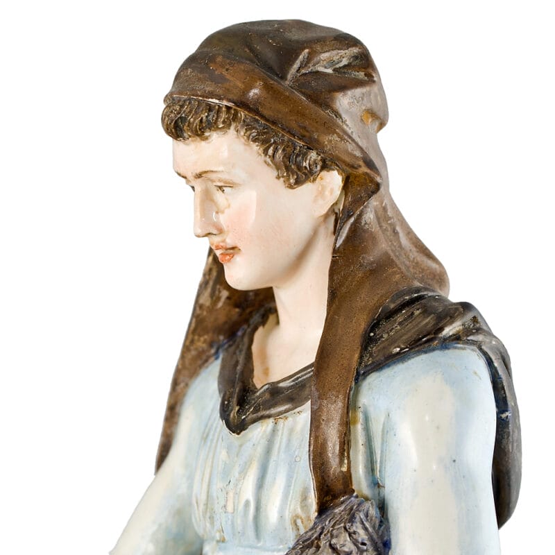 Straordinario e raro esempio di scultura in terraglia policroma della Real Fabbrica di Napoli, questo imponente gruppo allegorico celebra la regalità illuminata di Giuseppe Bonaparte e della moglie Julie Clary attraverso un complesso programma iconografico di gusto neoclassico.