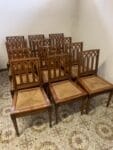 Gruppo di 4 sedie indiane di inizio 1900 interamente in legno rivestito in metallo bronzato con rilievi; schienale con teste di ariete.
