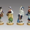 Gruppo di quattro sculture antiche in porcellana policroma di Capodimonte raffigurante le quattro stagioni. Napoli XIX secolo.