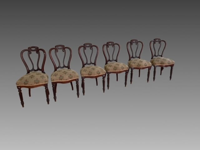 Sei sedie in mogano finemente intagliato.