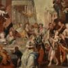 L’opera, pregevole testimonianza della ricchezza descrittiva tipica dei maestri fiamminghi del XVII secolo, è attribuibile per stile e scelte compositive alla prolifica bottega Frans Francken (Anversa 1581 – 1642), che amava riprendere nelle sue opere i temi biblici e in particolare i grandi banchetti della storia (le nozze di Ester ed Assuero, Banchetto di Erode, Banchetto di Lazzaro… ), che gli offrivano la possibilità di dare spazio alla sua forte propensione narrativa.