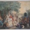 Il riposo durante la caccia. Acquerello su carta entro con cornice dorata.