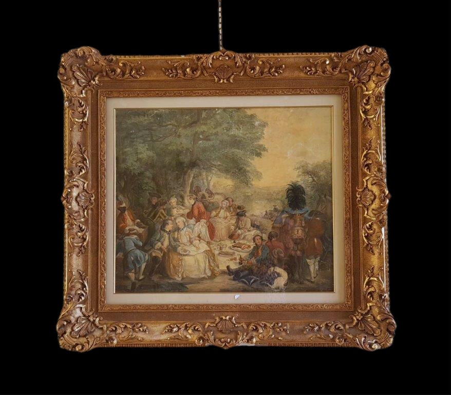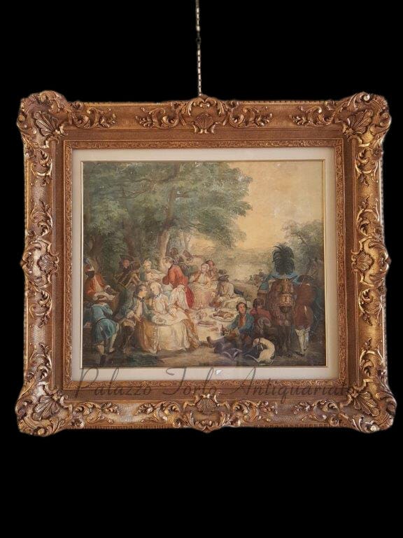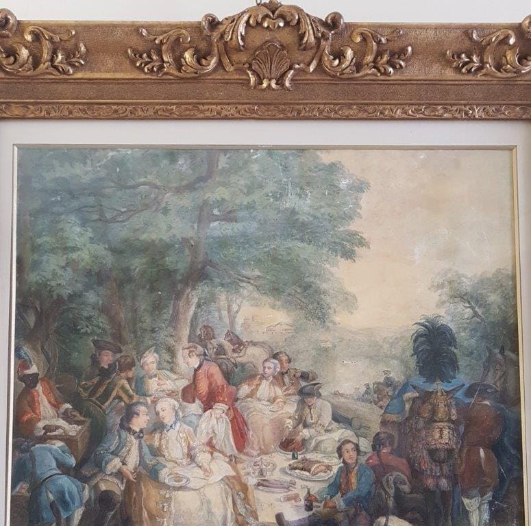 Il riposo durante la caccia. Acquerello su carta con cornice.