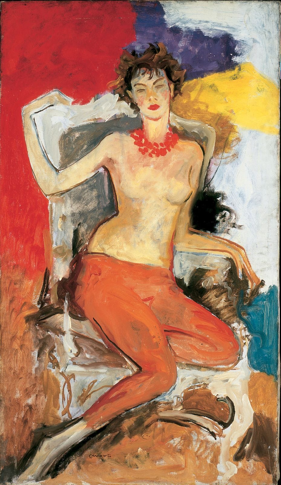“Collana rossa”, 1956 – olio su tela, cm 130×75