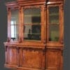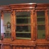 Libreria a tre ante in noce e radica di noce decorata da fregi finemente intagliati.