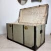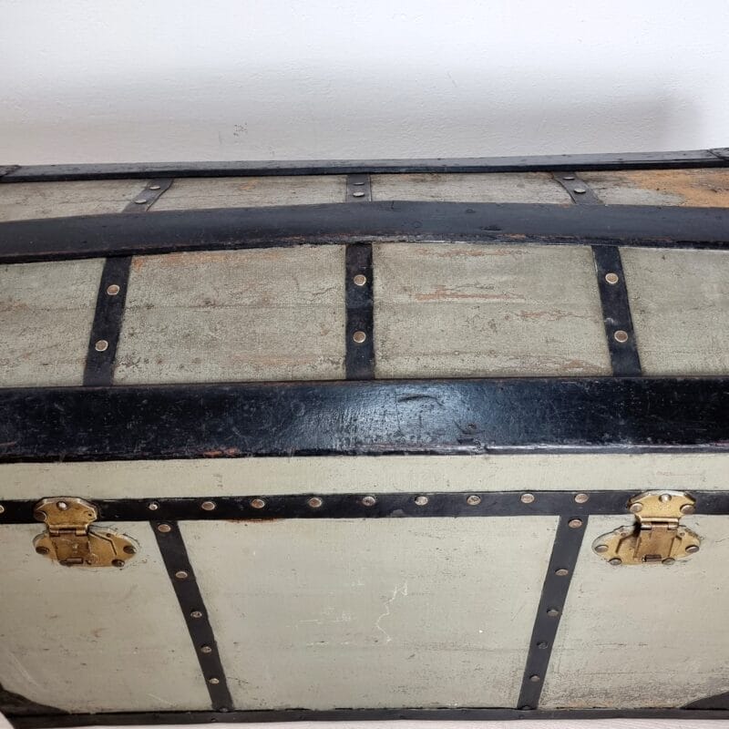 Rarissimo baule di Louis Vuitton, prodotto intorno al 1870 , realizzato in legno rivestito in tela grigia conosciuta come la ” Gris Trianon” il segno distintivo della prima produzione Vuitton , ferro laccato nero a protezione di tutta la struttura, interamente lavorato mano