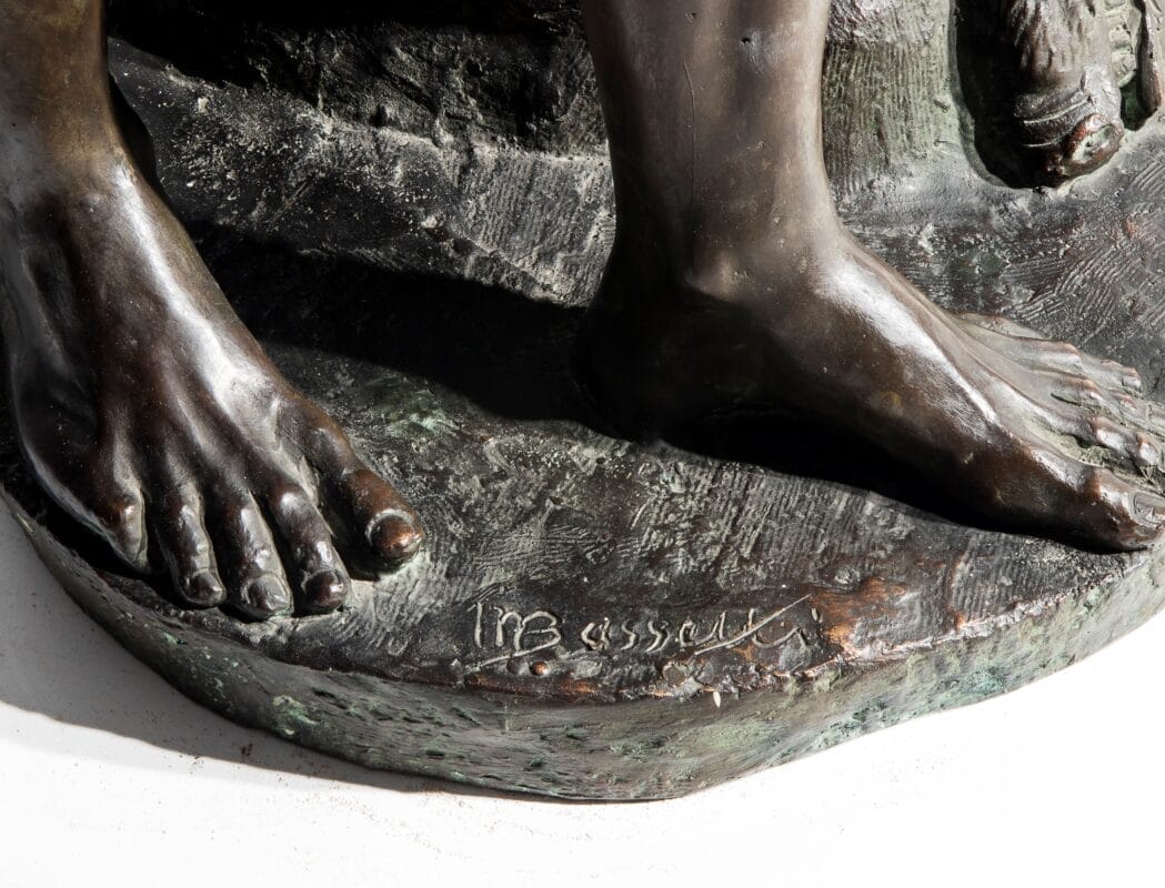 scultura in bronzo, cm 108x57x39, firmata: “M. Bassetti”