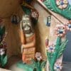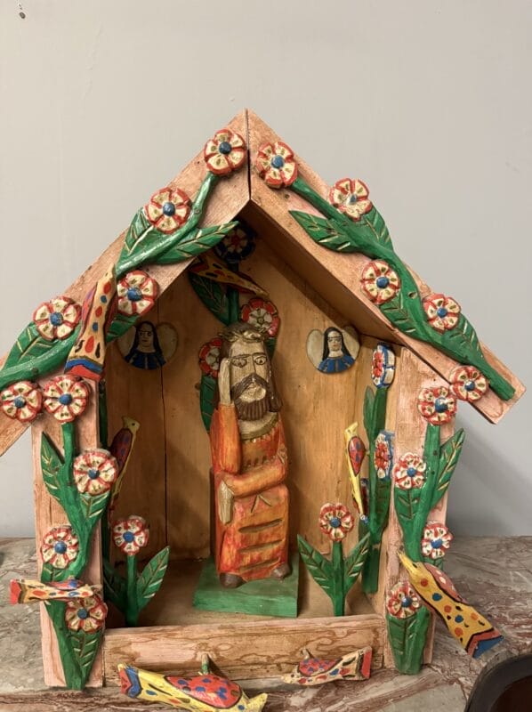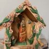 Opera contemporanea in legno dipinta, Capanna con Gesù, 56x57x30cm. Artista del nord Europa, scultura a rilievo, stato molto buono.