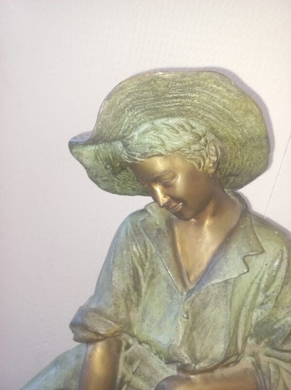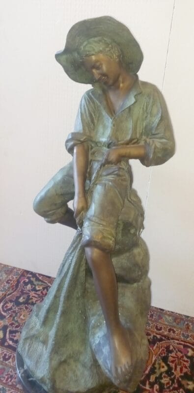Scultura in bronzo raffigurante giovane ragazzo eseguito con la tecnica della fusione a c’era persa rifinito a pettinatura verde e color bronzo.In perfette condizioni,poggia su base in marmo nero la base misura cm 35 x 35,l’altezza e di cm 95.. pesa circa 50 kg…trasporto da concordare
