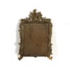 Piccola specchiera in legno intagliato, scolpito e dorato, XIX secolo, con cornice interna ad angoli stondati e leggermente modanata decorata da volute contrapposte. Alla base piedi a ricciolo e motivi fogliati, cm 73x50x6