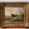 Pittore italiano (fine XVIII-inizi XIX sec.) – Paesaggio con mucche, capre e cane al ruscello.
