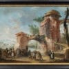 Pittore italiano (XVIII sec.) – Paesaggio con rovine e personaggi.