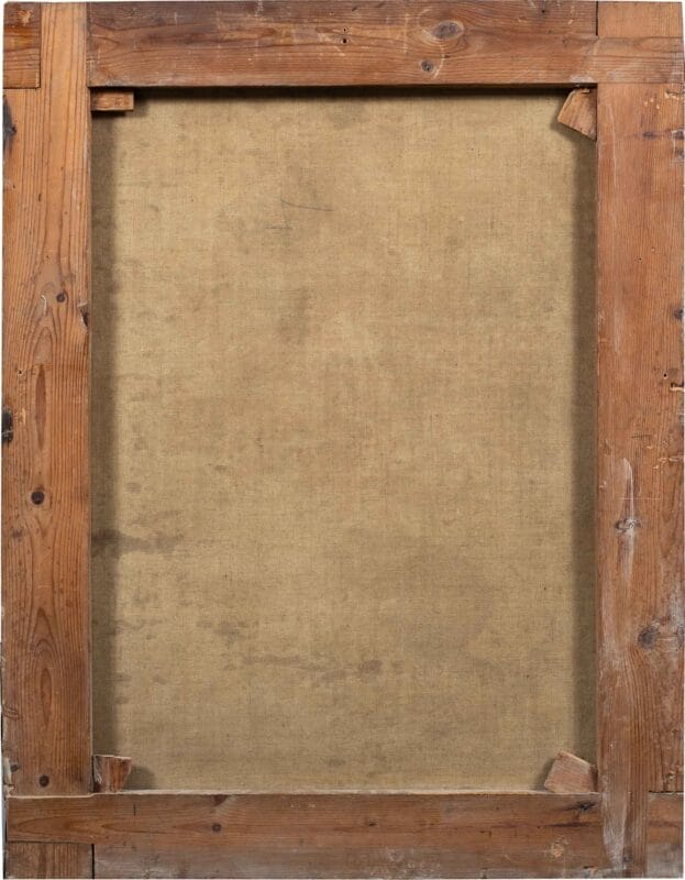 Condition report: Tela foderata. Discreto stato di conservazione della superficie pittorica, ridipinture e vecchi restauri.