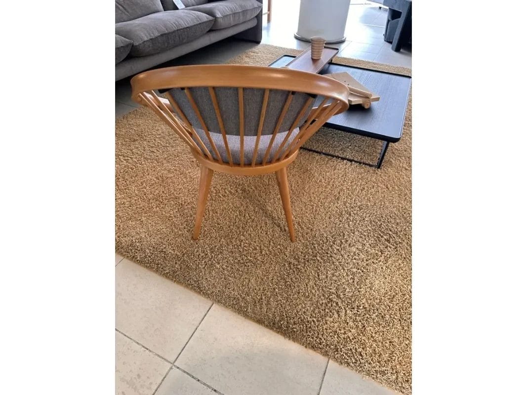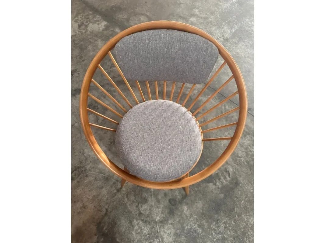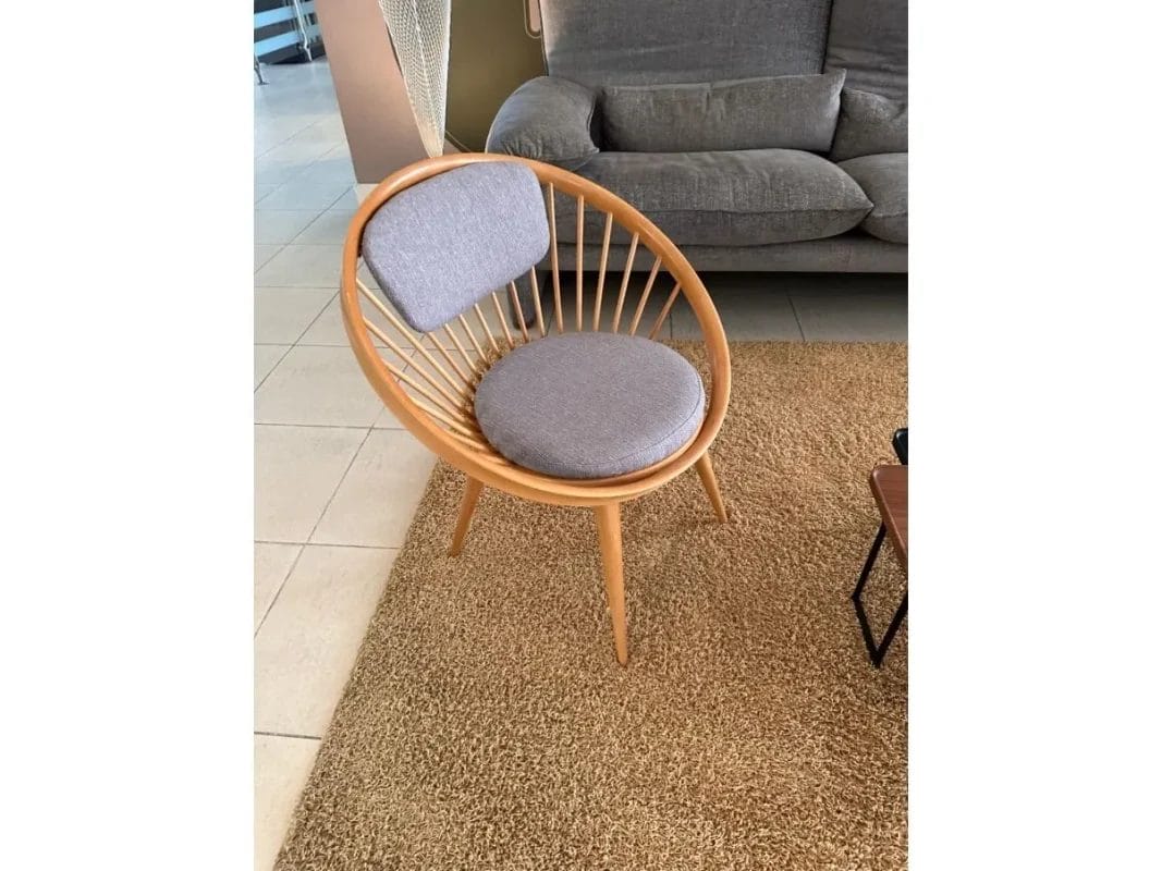Iconica poltroncina di design Scandinavo Anni ’60 Disegnata da Yngve Ekstrom e realizzata in faggio curvato e tornito e stata completamente rinnovata nella tapezzaria considerando che la struttura era integra .