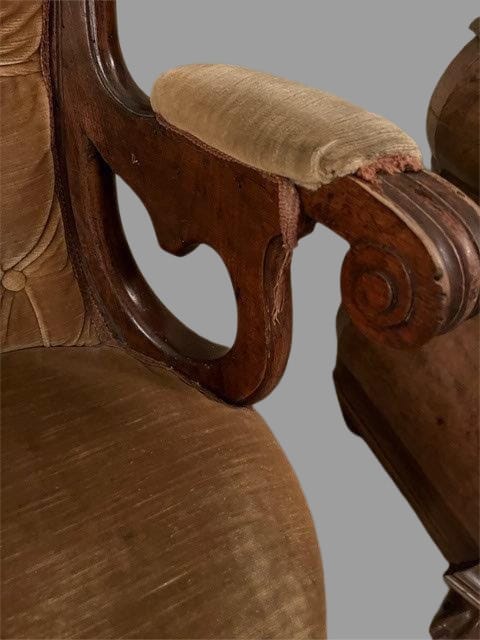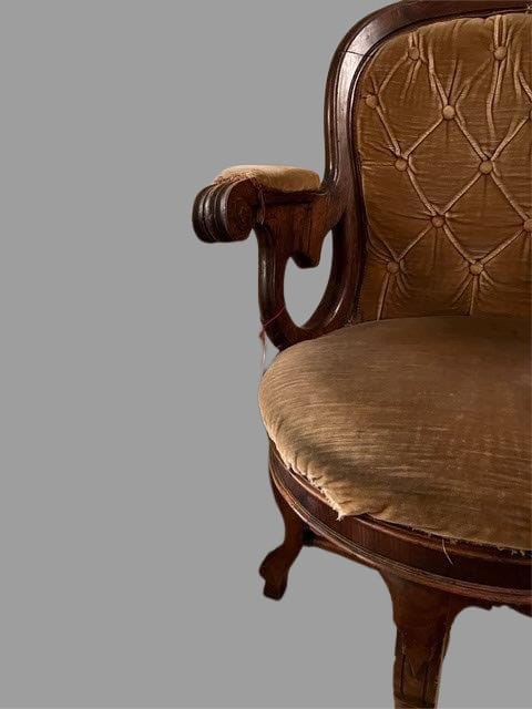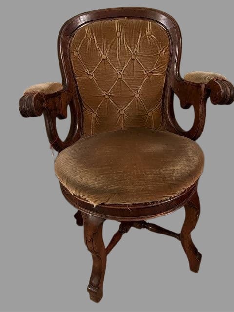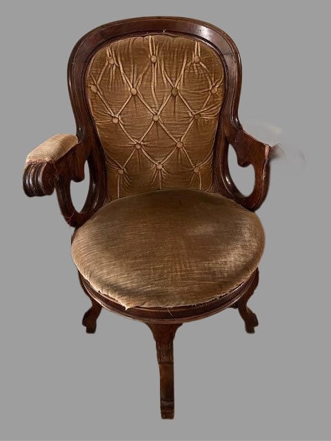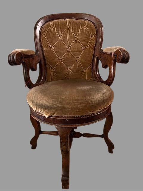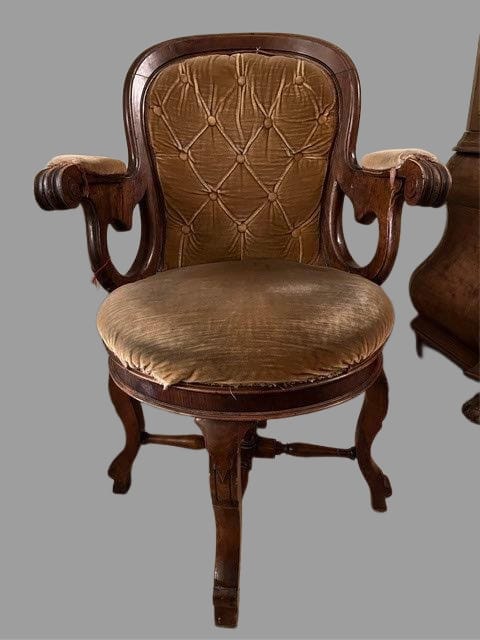 POLTRONA GIREVOLE IN LEGNO DI NOCE.