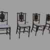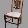 Quattro sedioline in mogano con intarsi e filettatura in legni vari.