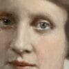 Elegante ritratto a tre quarti di una giovane donna, caratterizzato da un’espressione serena e uno sguardo diretto. La figura indossa una veste leggera annodata sul décolleté, evocando una purezza classica. Lo sfondo presenta toni eterei conferendo all’opera un’atmosfera sospesa tra il ritratto borghese e l’immaginario onirico.