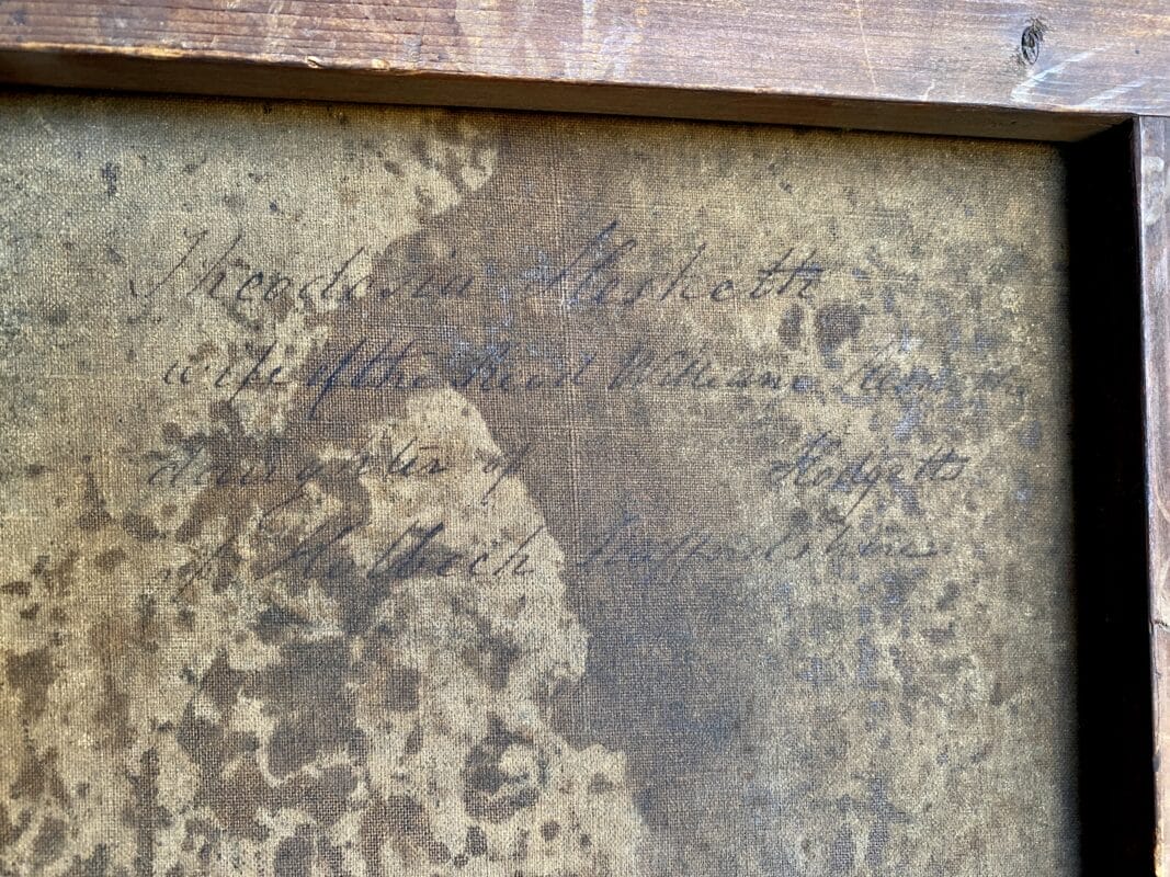 “Theodosia Haslett, wife of the Revd William Haslett, daughter of Joseph Clagett, of Hobbech, Staffordshire”, che fornisce preziose indicazioni sulla provenienza e sull’identità della protagonista del ritratto.