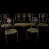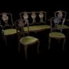 Salotto composto da un divano due poltrone e due sedie finemente intarsiato.