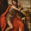 L’opera ritrae San Giovanni Battista a figura intera in un momento di meditazione nel deserto, ritratto con un’eleganza sobria, seduto nella sua tipica posa contemplativa con l’indice rivolto al cielo, mentre il suo sguardo si volge all’osservatore, e con una mano regge il tradizionale bastone a croce, alludente al sacrificio di Cristo sulla croce.