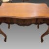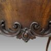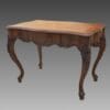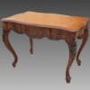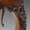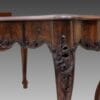 Scrivania in mogano e piuma di mogano con decorazioni intagliate a motivi floreali. Tre cassetti nella fascia centrale.