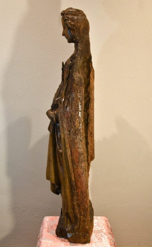 Nel suo elegante disegno la scultura, evocante i canoni della tradizione del gotico francese, catturerà l’ammirazione di ogni appassionato di sculture antiche, certamente per la sua bellezza ideale ma, nel contempo, anche per la forza e il senso di solennità che riesce a trasmettere.