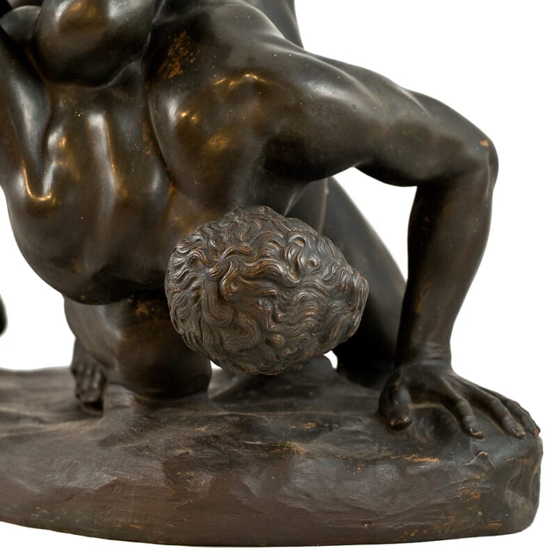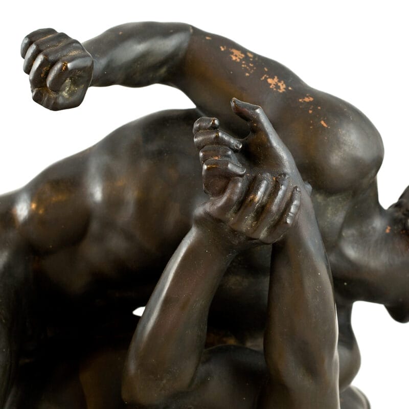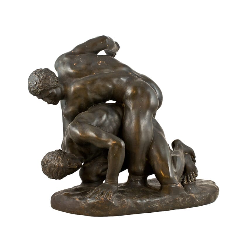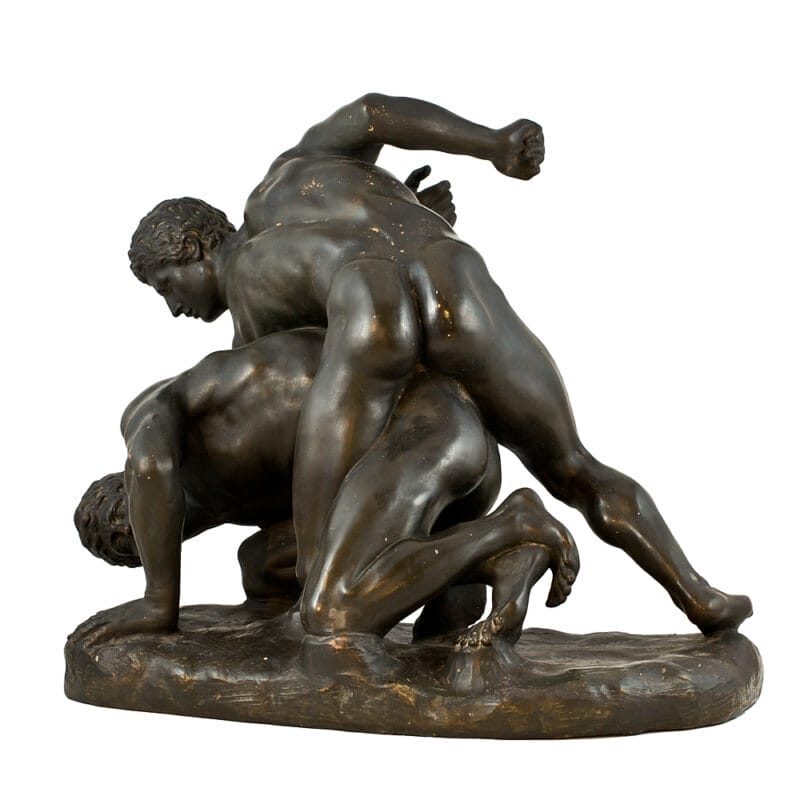 Scultura in terracotta raffigurante due lottatori. Di provenienza napoletana e di epoca dei primi dell’Ottocento.