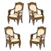 Set di Quattro Poltrone dei primi dell’Ottocento e provenienza napoletana. Realizzate in legno di palissandro con intarsi in acero e madreperla. Stoffa di San Leucio.