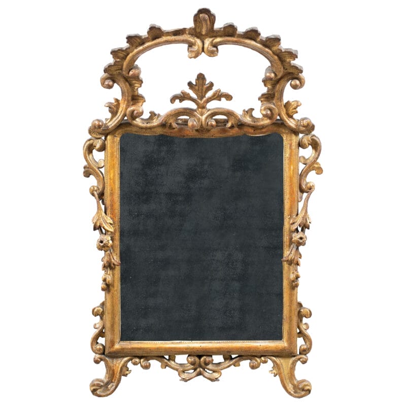 Specchiera in legno intagliato e dorato. Italia, XVIII secolo.