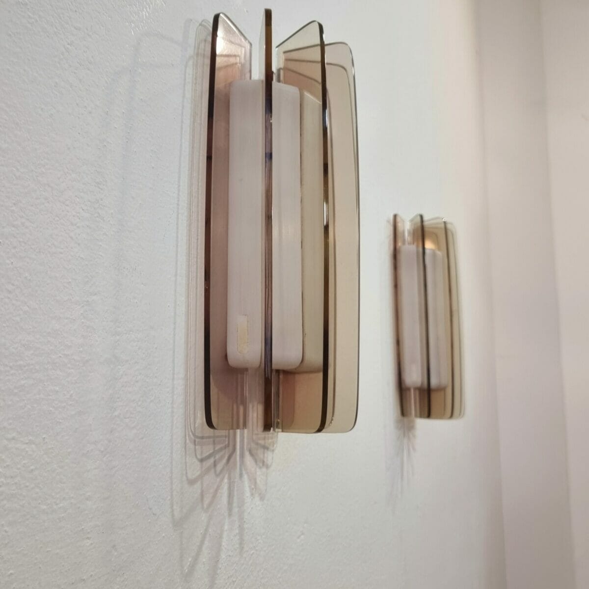 Specchiera con lampade da muro in plexiglas di Harvey Guzzini anni 70.