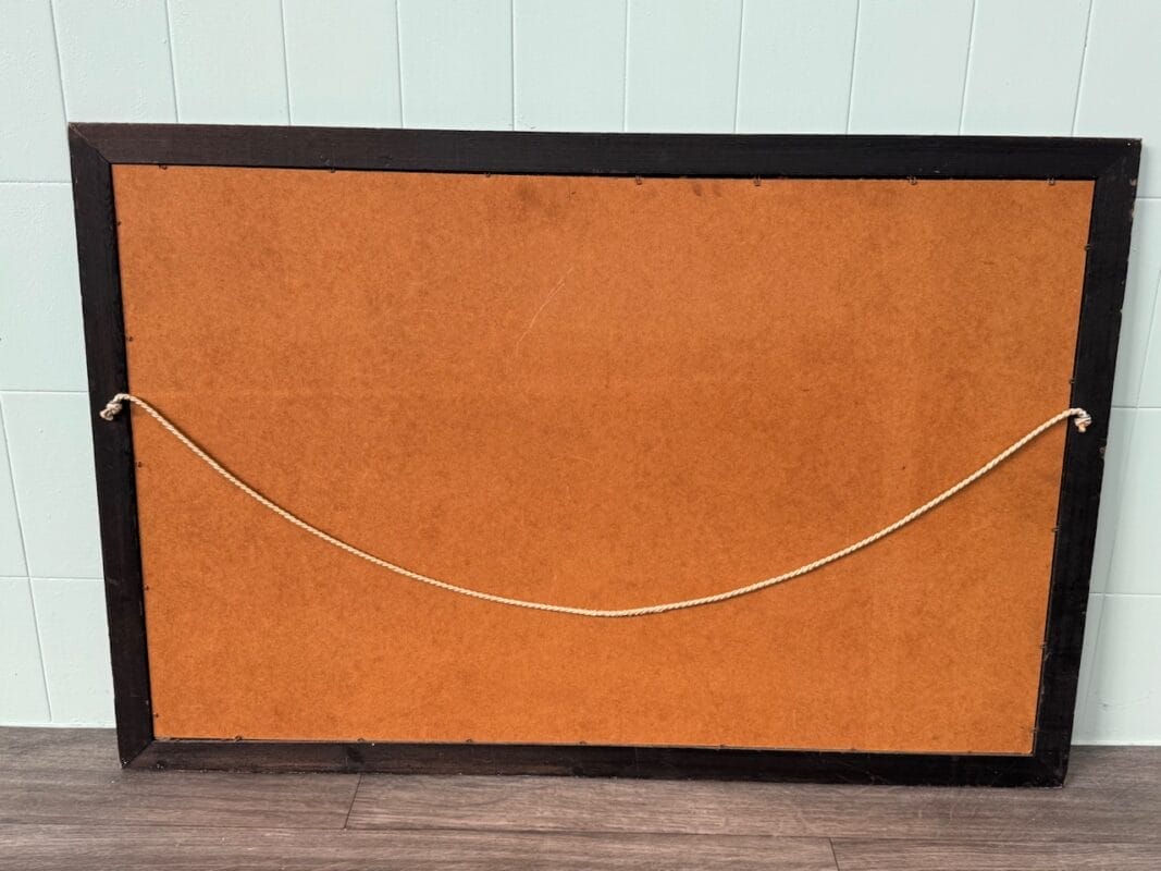 Conservato molto bene anche se presenta qualche segno del tempo sulla cornice di legno, inoltre c’e qualche pezzo mancante sulle lettere stampate sulla parte alta. Lo specchio ha una generale patina del tempo come piccoli puntini ma che non sono fastidiosi per la bellezza dello specchio.