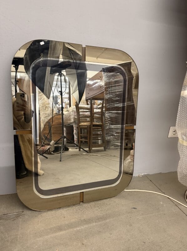 Specchio space age anni’70, doppio livello, modernariato. Mis 84x66cm. Buono stato di conservazione.