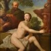 Questo piacevolissimo dipinto, di dimensioni importanti, illustra la storia di Susanna, narrata nelle pagine dell’Antico Testamento (Daniele, XIII): moglie fedele di un ricco giudeo, viene molestata mentre si accinge al bagno nel giardino del suo palazzo da due vecchi giudici viziosi che minacciano di denunciarla come fedifraga se non concederà loro le proprie grazie;