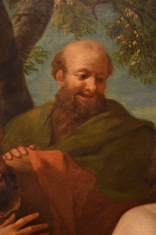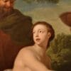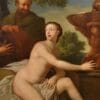La rappresentazione di Susanna seminuda fu pertanto spesso un pretesto per soddisfare il desidero dei committenti per i soggetti di nudo femminile: bellissima qui la torsione che assume il suo corpo, dipinto come un ignudo ma innocente tripudio di carni candide e opulente.