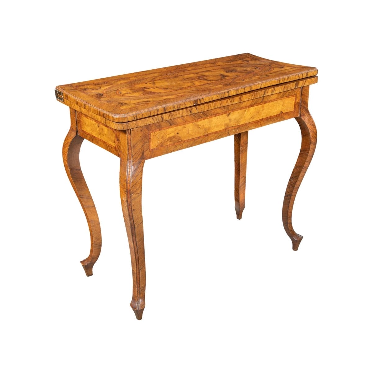 Tavolino da gioco lastronato in legno di ulivo. Toscana, XVIII secolo.