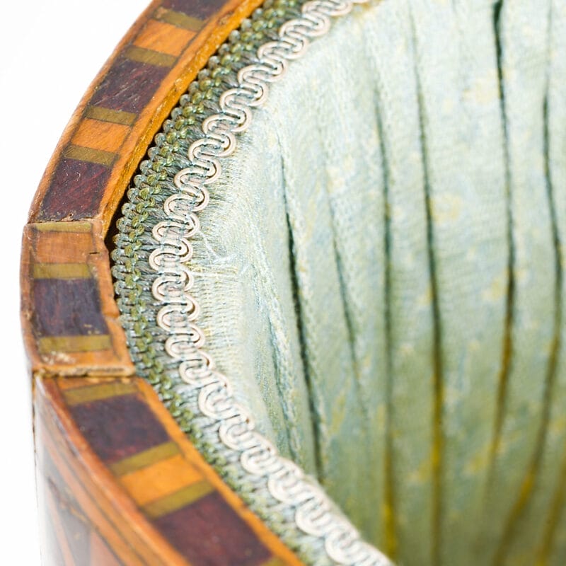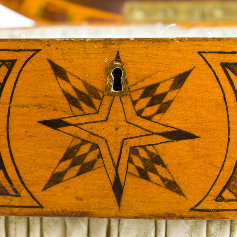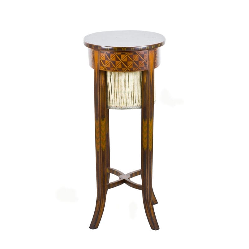 Splendido ed antico tavolino francese da lavoro (da cucito) realizzato in legno dipinto.