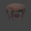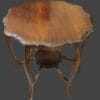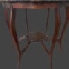 Tavolino da salotto in mogano con piano sagomato e sei gambe mosse raccordate da un pianetto inferiore.