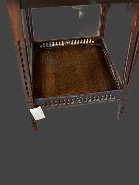TAVOLINO IN MOGANO INTARSIATO IN LEGNO CHIARO.