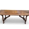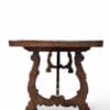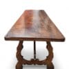 Tavolo a fratina in legno di noce del XVII secolo, sostegni a lira e traverse modanate, lunghezza 220 cm, profondità 70 cm, altezza 81.5 cm.
