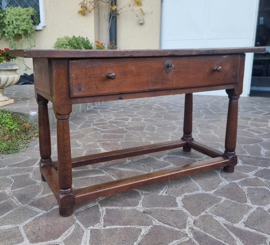 Nonostante il passare del tempo, la struttura è rimasta perfettamente stabile e ben equilibrata. Così, ogni segno del legno diventa una traccia del passato, un dettaglio che aggiunge carattere e autenticità. Questo tavolo non è soltanto un oggetto d’arredo, ma un frammento tangibile di storia italiana.
