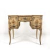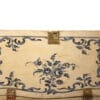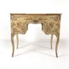 Toilette in legno laccato, Genova, XVIII secolo, corpo leggermente mosso e decorato in policromia a mazzi di fiori entro riserve a volute su fondo avorio. Il piano è tripartito a due ante laterali che celano due vani, al centro un pannello si solleva e nasconde uno specchio. Nella cintura un cassetto centrale e uno più piccolo ai lati; gambe arcuate, cm 85x96x53