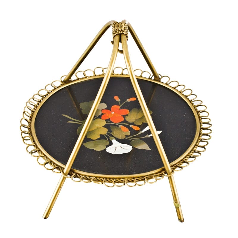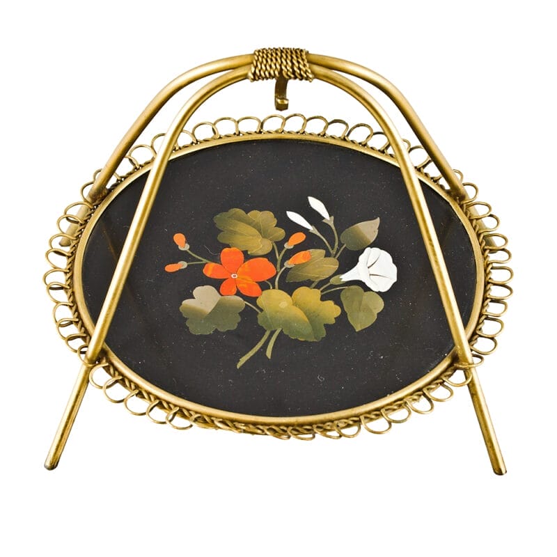 Vassoietto portasigari in bronzo dorato e pietre dure di epoca fine Ottocento e provenienza italiana.