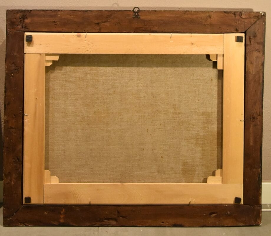 La veduta, in ottime condizioni di conservazione, è arricchita da una bella cornice dorata e laccata antica.